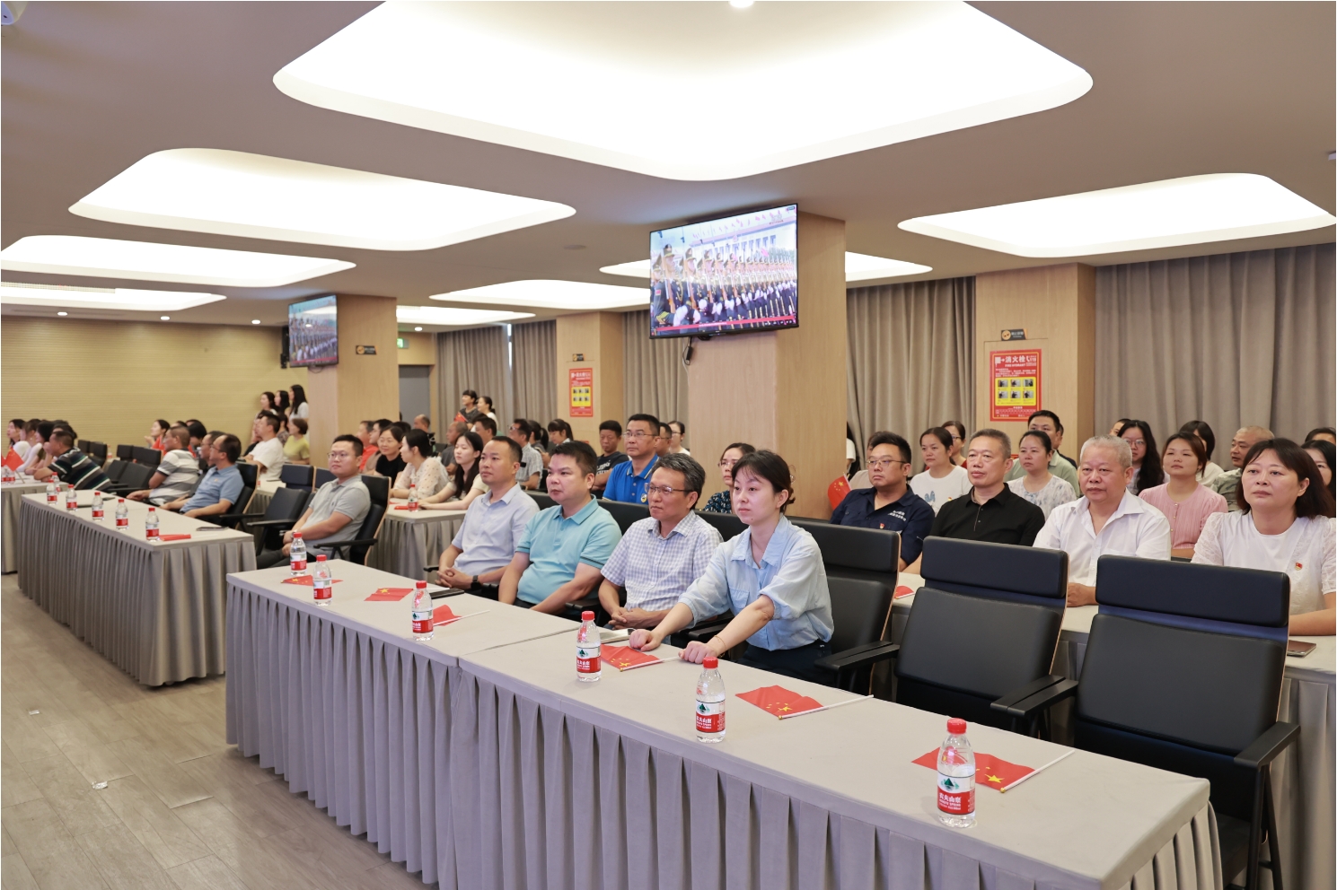為弘揚(yáng)愛國(guó)主義精神、激發(fā)員工民族自豪感,長(zhǎng)沙新港公司于9月3日上午9時(shí),在多功能會(huì)議室組織全體干部職工80余人集中收看“紀(jì)念中國(guó)人民抗日戰(zhàn)爭(zhēng)暨世界反法西斯戰(zhàn)爭(zhēng)勝利80周年閱兵式”直播;顒(dòng)中,全體人員嚴(yán)肅認(rèn)真觀看,隨著受閱方陣整齊的步伐、先進(jìn)裝備的震撼亮相,現(xiàn)場(chǎng)不時(shí)爆發(fā)熱烈掌聲。